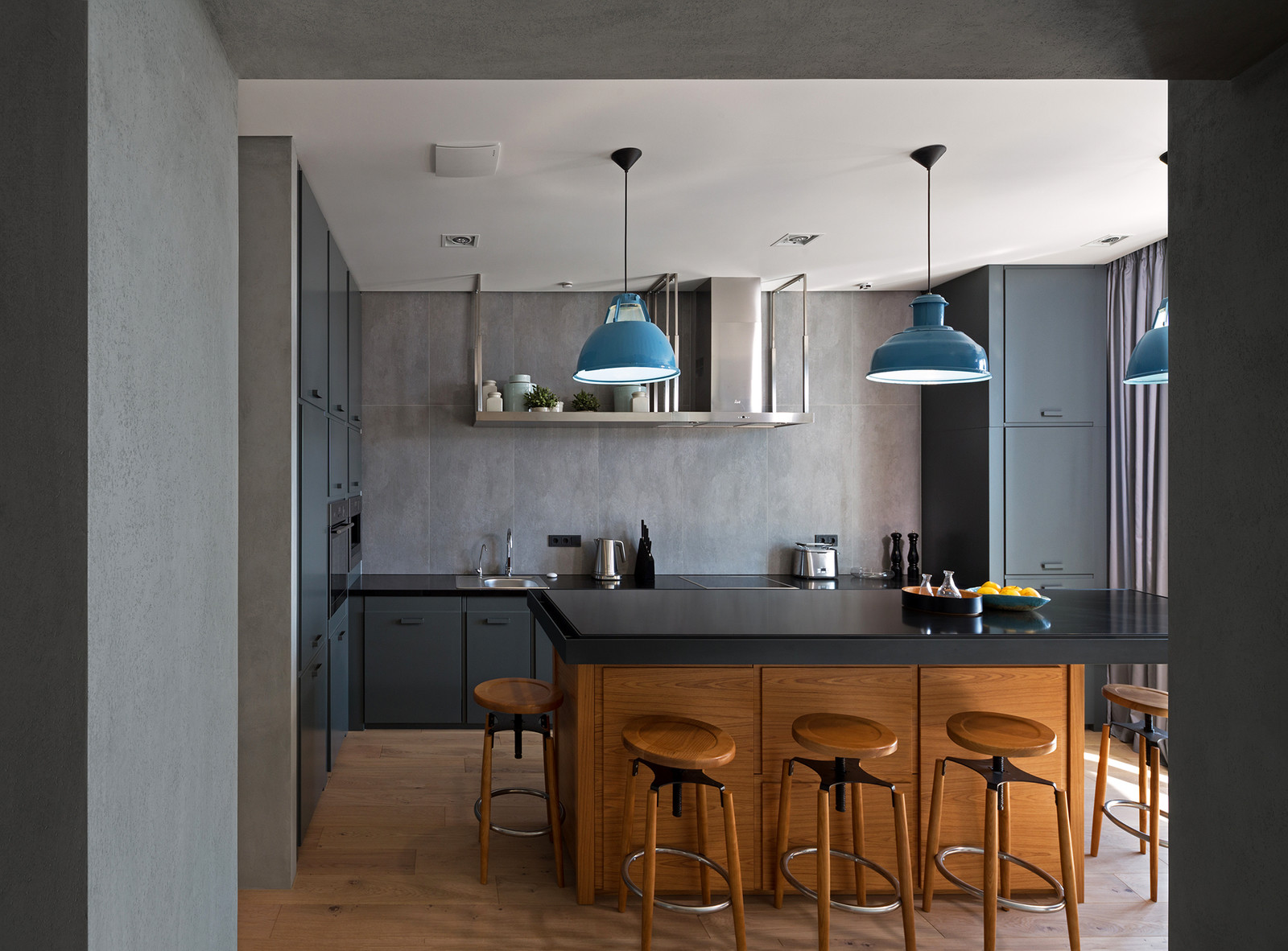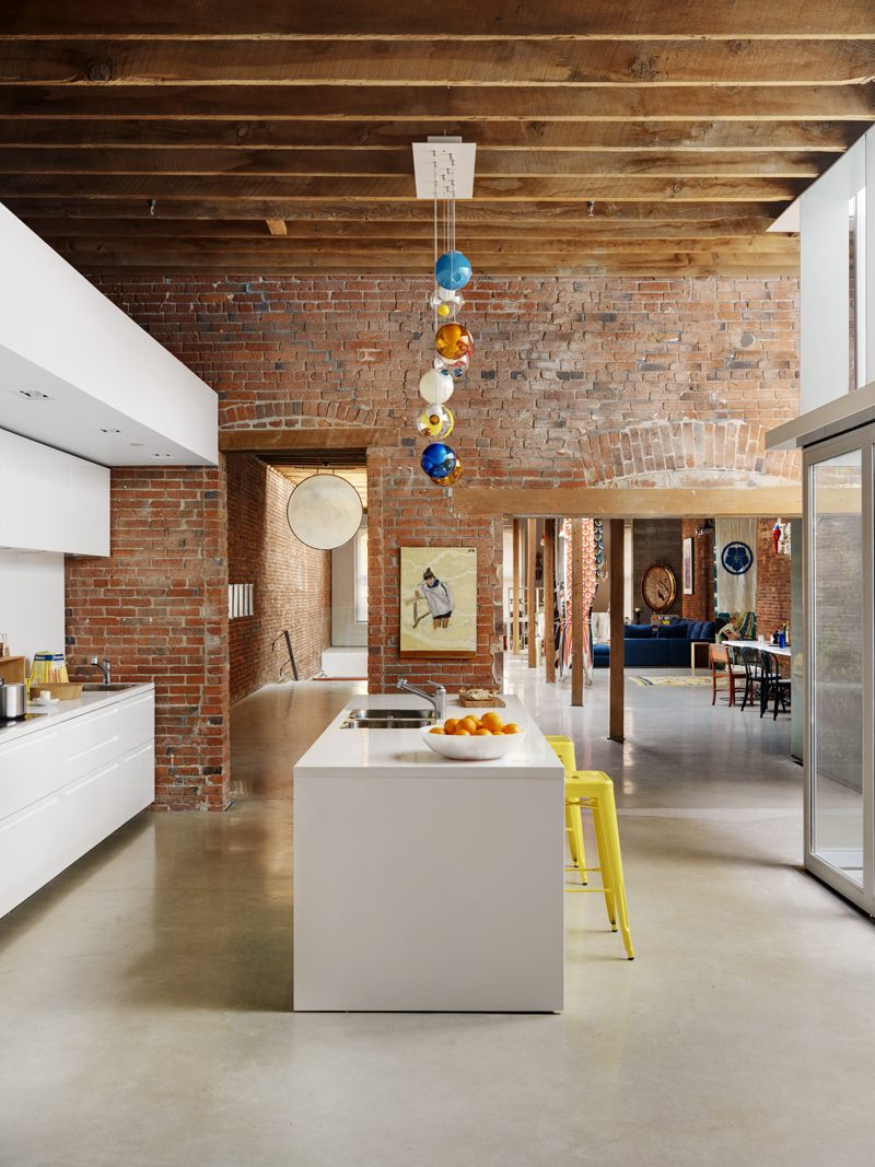 Brick, concrete and stainless steel kitchen