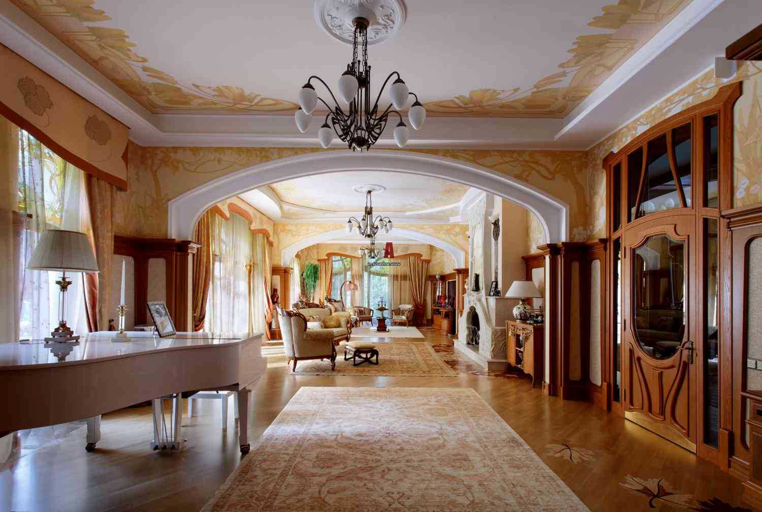 Today, the Art Nouveau interior is an almost modern “classic” of the twentieth century. A positive point in the self-decoration of the rooms is that you can find everything ready for sale. There are many directories that offer ready-made furniture, doors, stained glass, forging for stair railings, lamps and floor mats specifically for this style. It remains to buy the appropriate elements for each room with a design in the spirit of Art Nouveau.