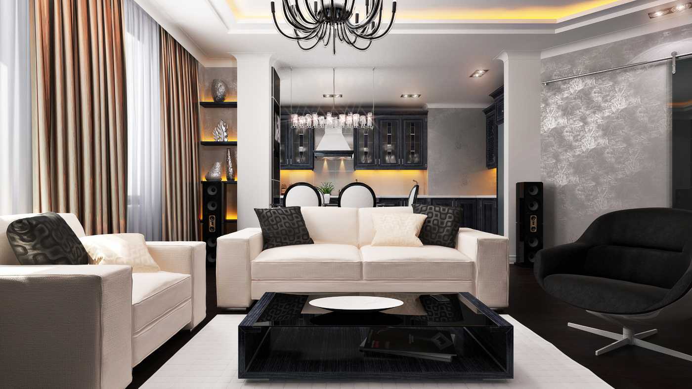 The living room is the main room that sets the general tone and color scheme of the apartment for modern.In the premises for the reception of guests it is worth investing in the design of the floor, where the elegant lines inherent in the style are made out using: