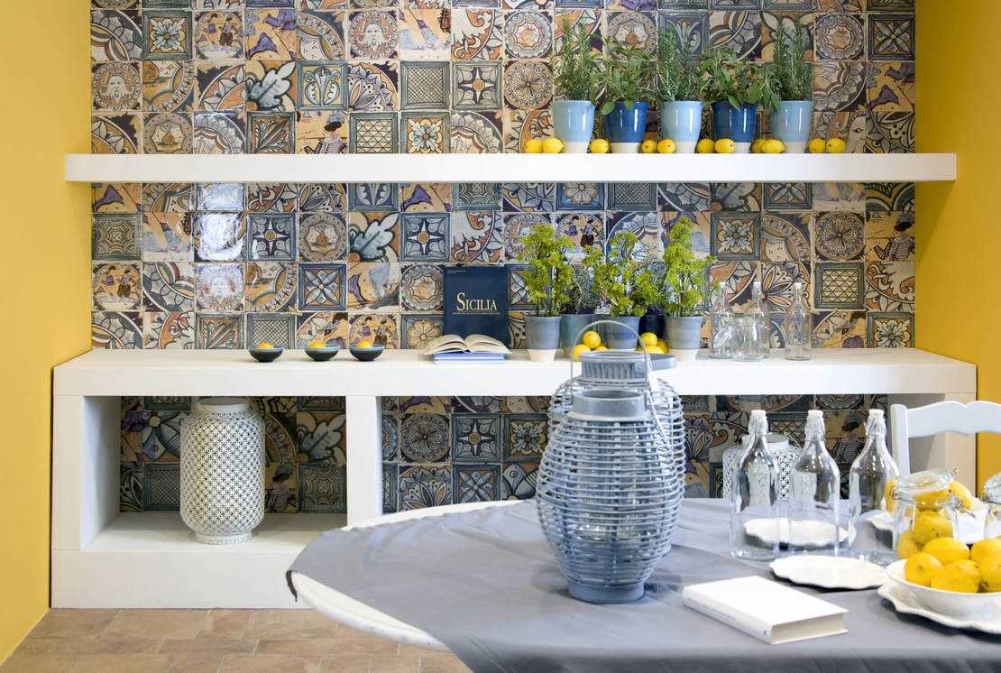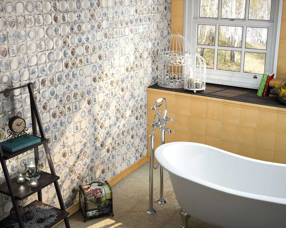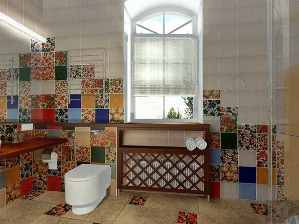 - In the bathroom, the patchwork in the interior is also appropriate. You can purchase tiles of different colors and assemble the composition yourself. And you can find in specialized stores ready-made tile in the style of patchwork.