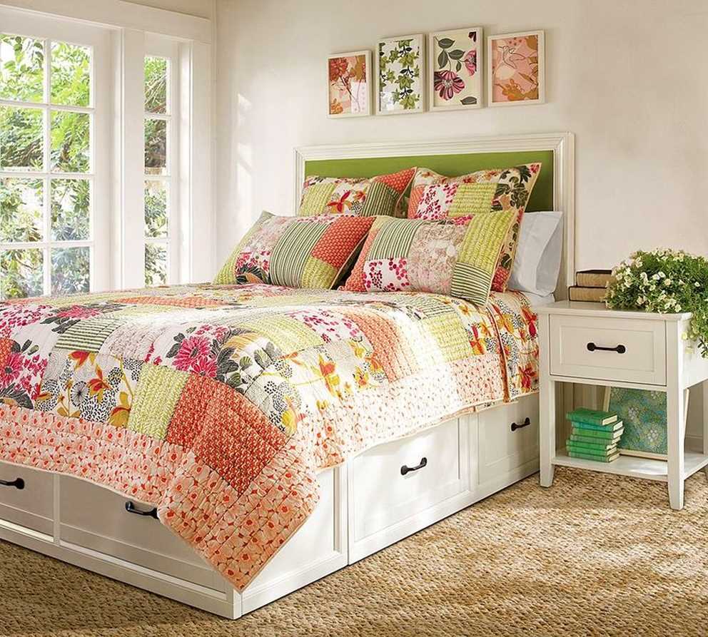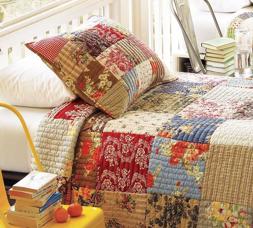 The main advantage of the patchwork style is the ability to use old, long-forgotten shreds of fabric in the work. It’s enough to sew them into any composition and the whole interior will be transformed.