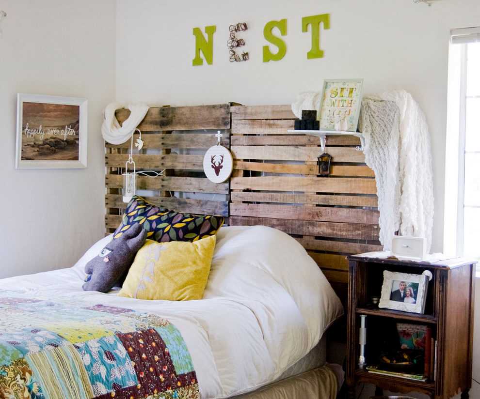 - At the head of the bed in the bedroom. Moreover, it can be both the entire wall, and its part. For example, in the center.