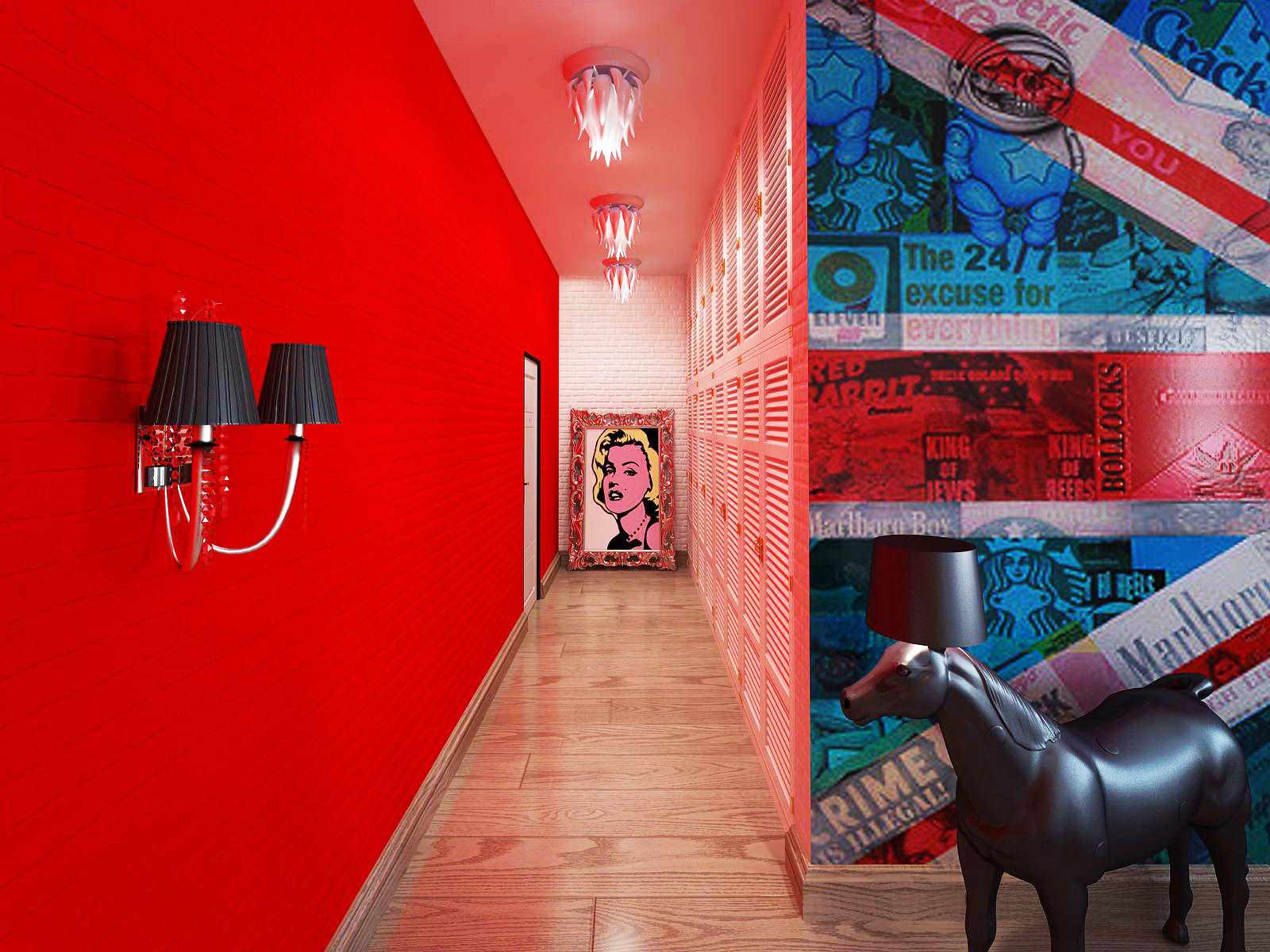 There is no need to add decor to this list, since everyone who is going to remodel a room in the pop style knows all the details. For example, a true fan of pop art apartments does not need to be reminded that the style is characterized by absurd plastic figures, sparkling, sometimes dazzling details.
