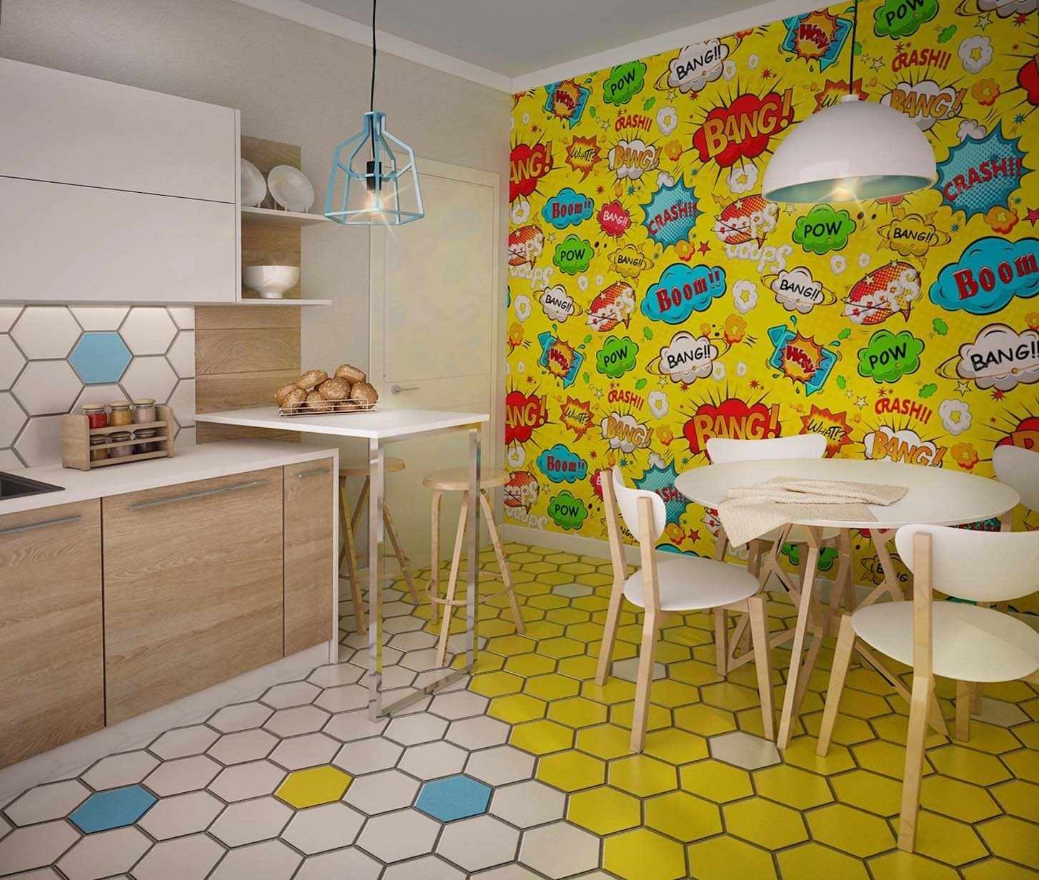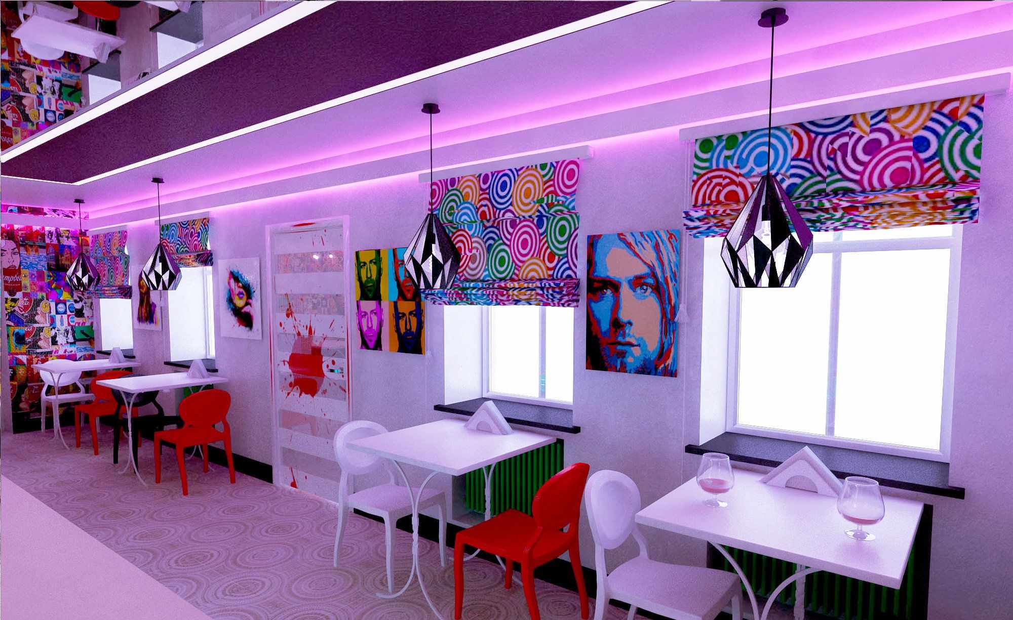 - 10 50 photos of examples of design of premises in the style of pop art: