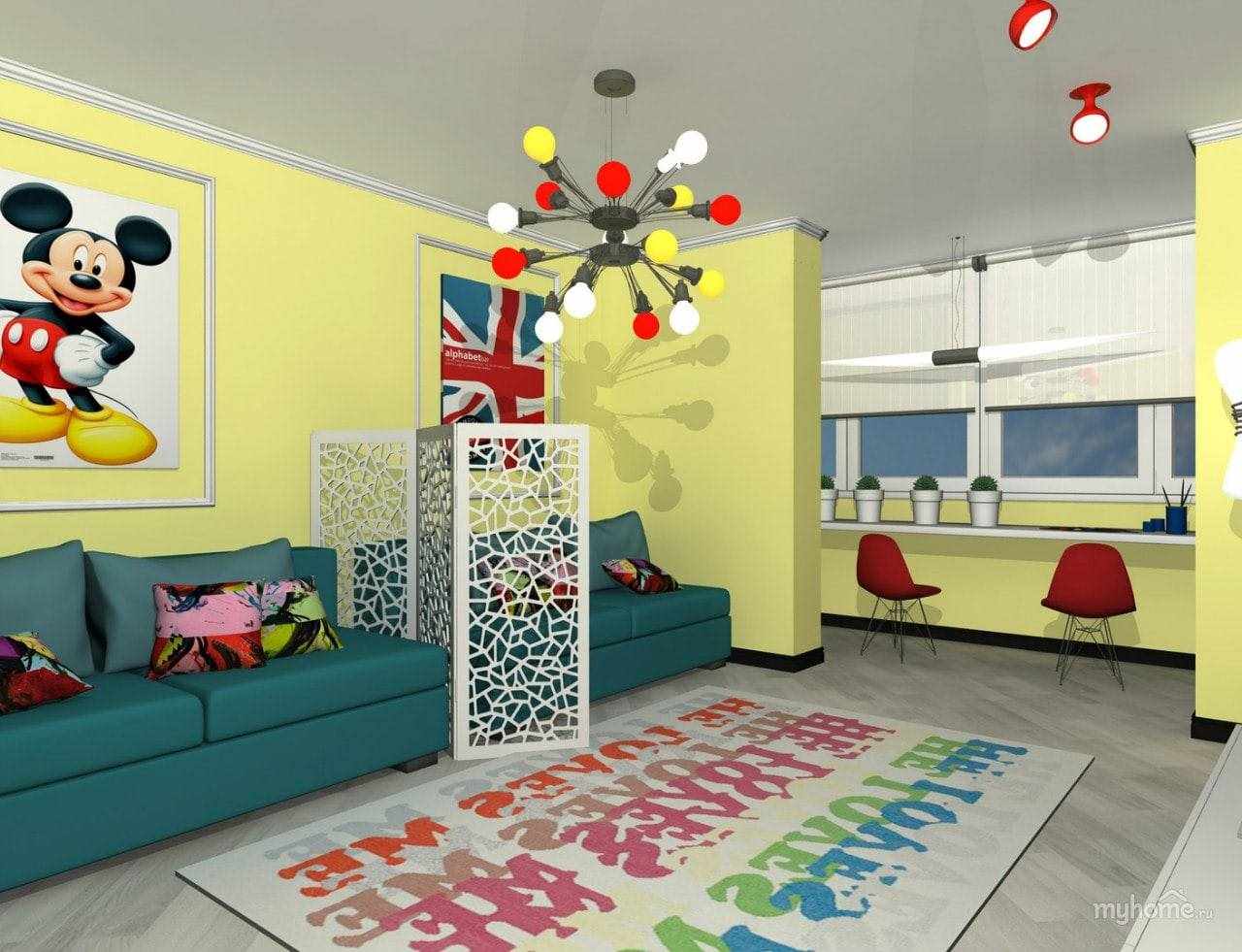 The room in the style of pop art will look modern and beautiful.