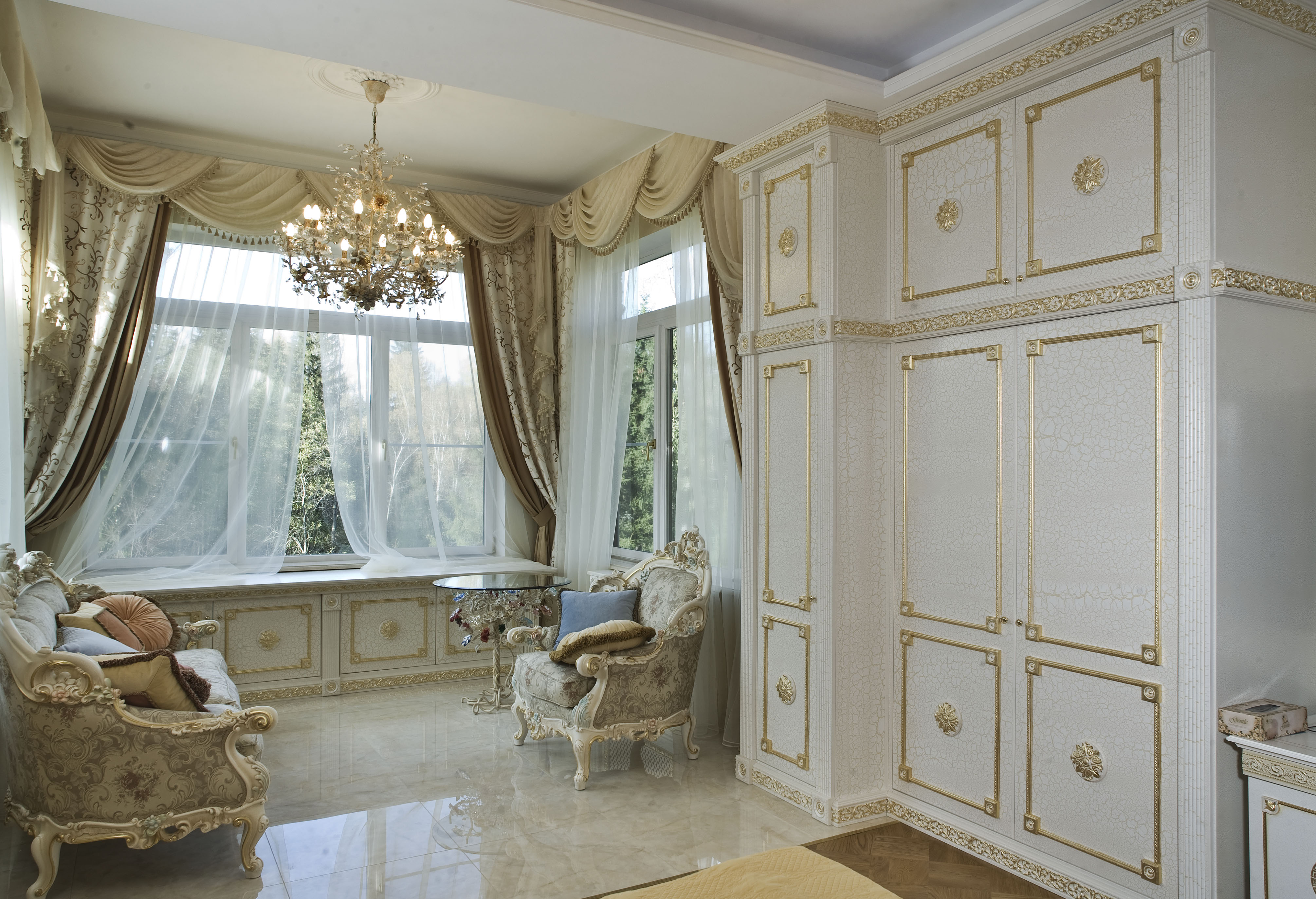 Light colors in a rococo style interior design