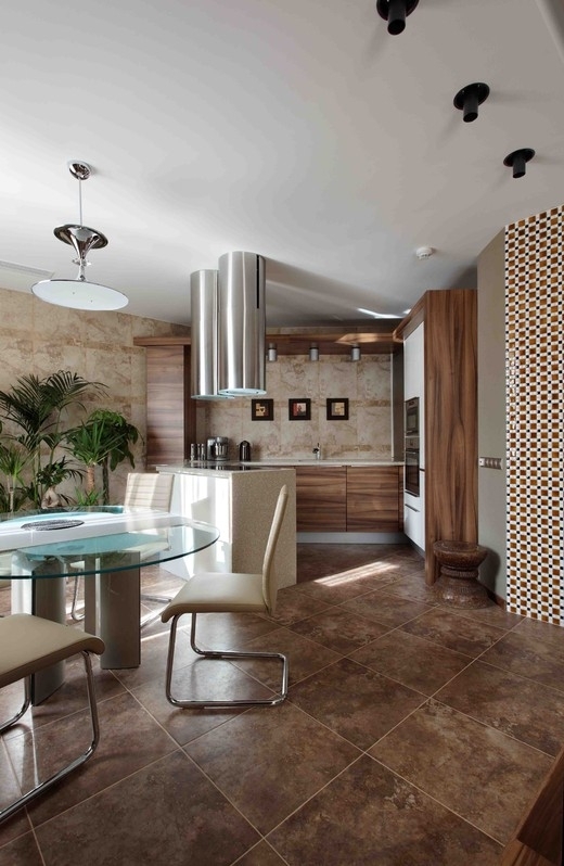 In our country, the kitchen is not only a place for cooking. Here they eat and conduct emotional conversations. The place is important to make interesting. It is safe to use the lightest shade of brown here. With its help, the area of even the kitchen in Khrushchev’s apartments will visually increase.