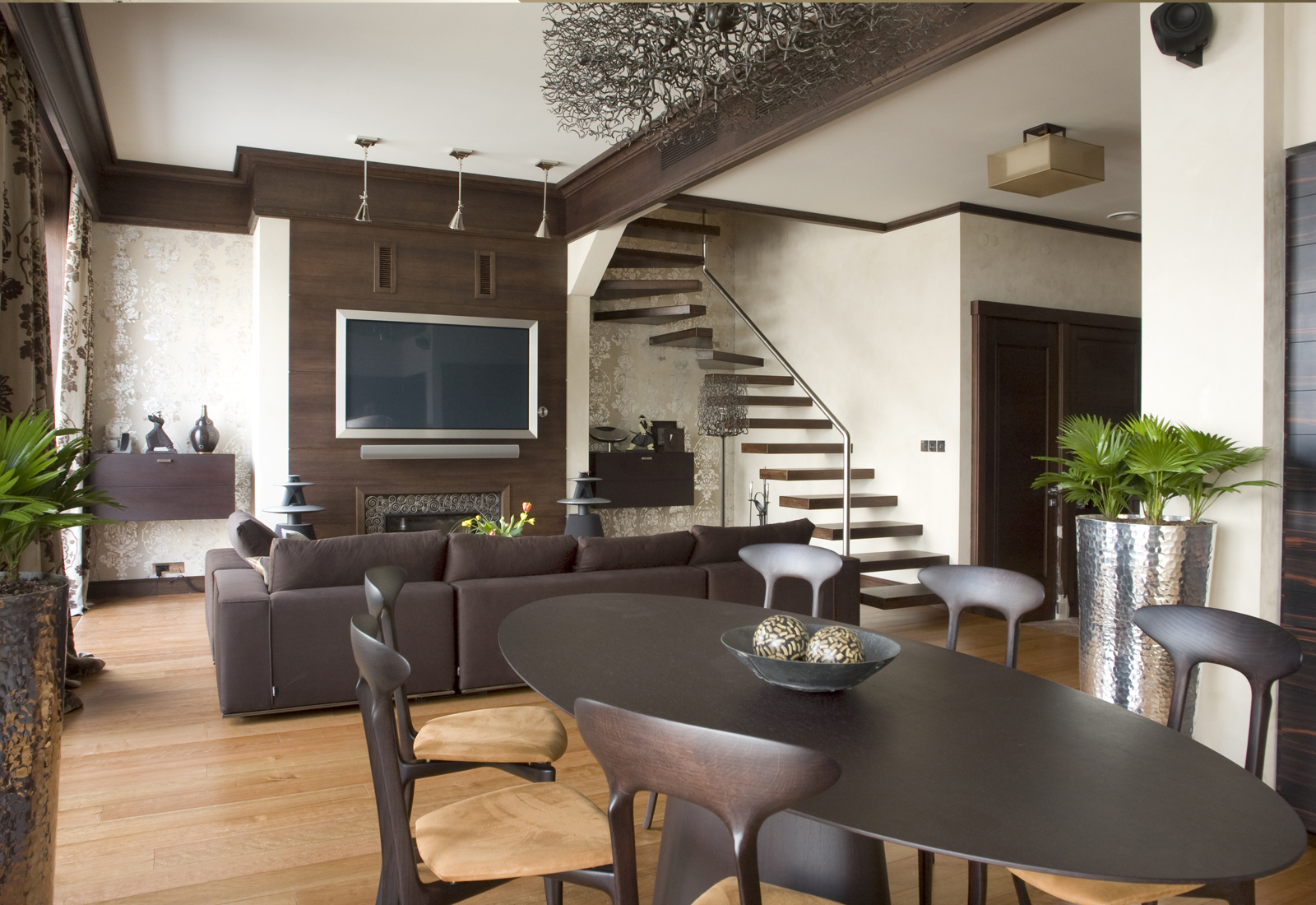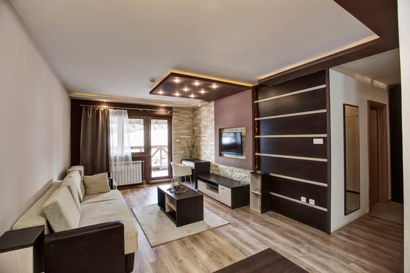 | Living room | A dark, deep shade will help make the design expensive and luxurious. Combined with natural wood, brown will look royal |