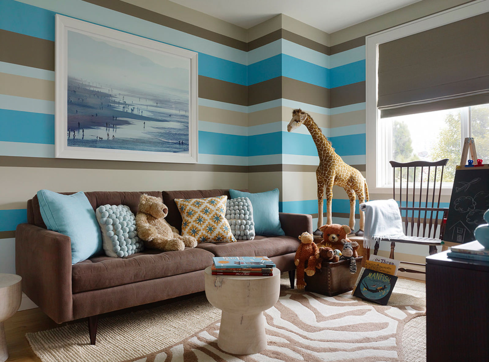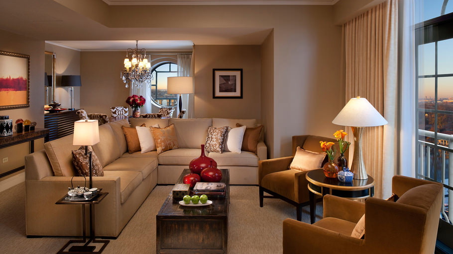 Light shades of brown expand the living room