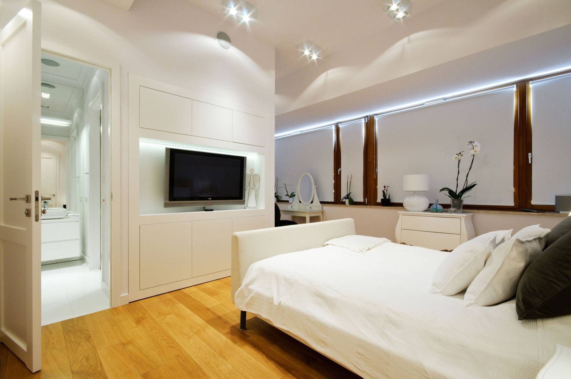 - The illumination of niches and openings looks original if spot illumination is organized in their plane. So the room can visually give additional volume.