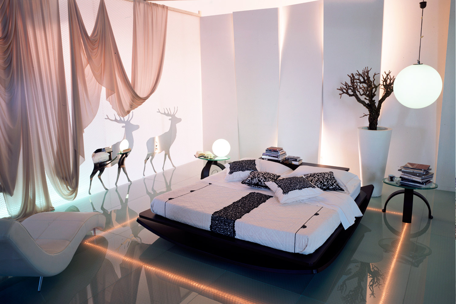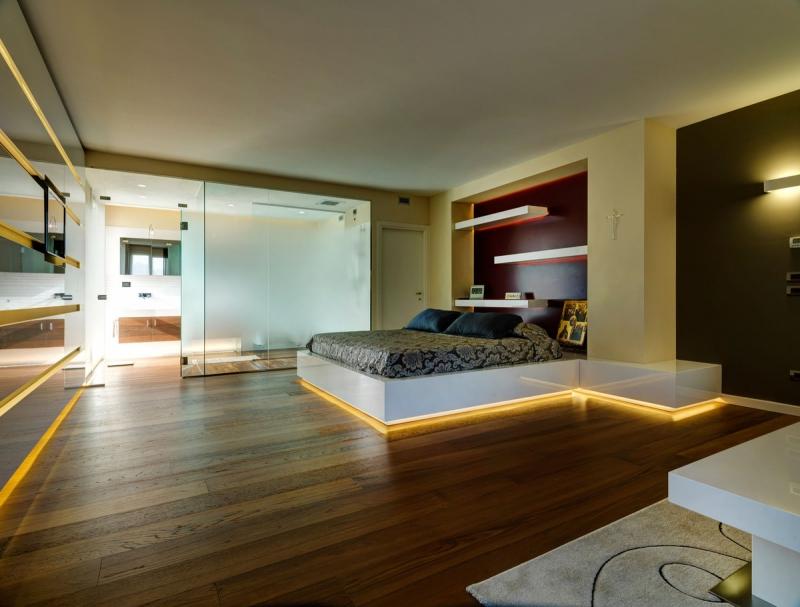 An example of the implementation of hidden lighting in the interior of a bedroom