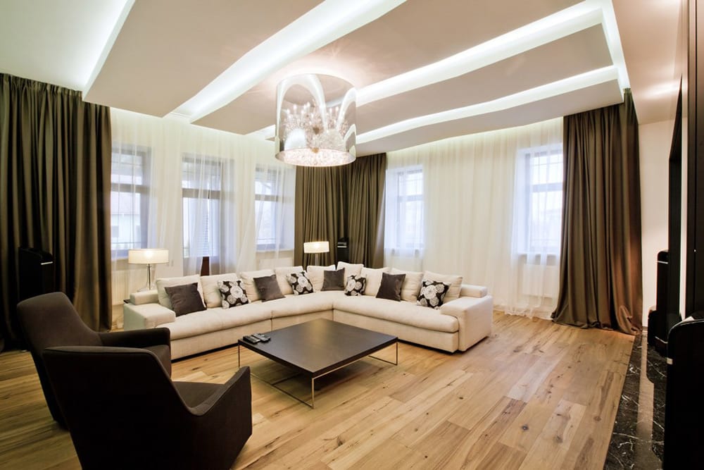If a large chandelier is chosen as the main lighting, the light will be different in some places of the room, but still without sudden changes