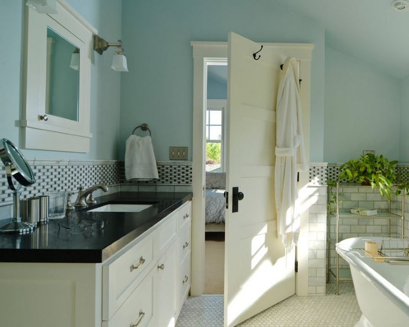 | 4. | Cold shades of blue | Calm down, help to plunge into thoughts (a white door with a blue-blue insert or a pattern of stained glass) |