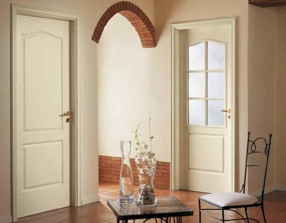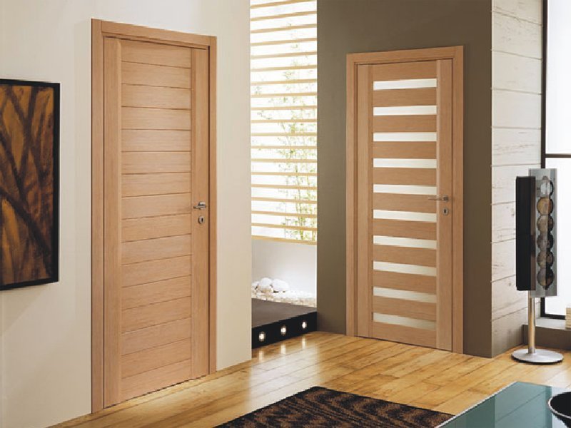 Pressed wood waste derivatives with paintwork are a great way to save money. The doors inside the apartment are subject to lower loads than the entrance, so the operational requirements for them are much lower.