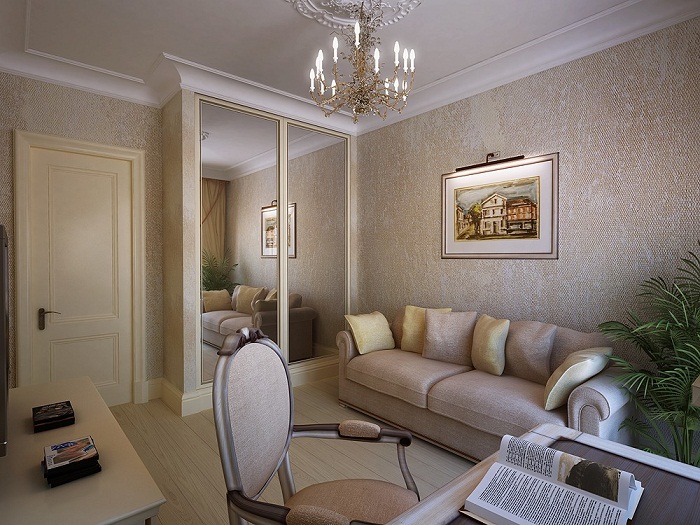 Tip. If the room has a little natural light, choose with glossy paint (with a maximum degree of light reflection) and a mirror insert.
