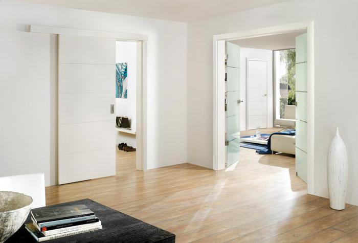 The color of door leaves matches the walls, floors and furniture.