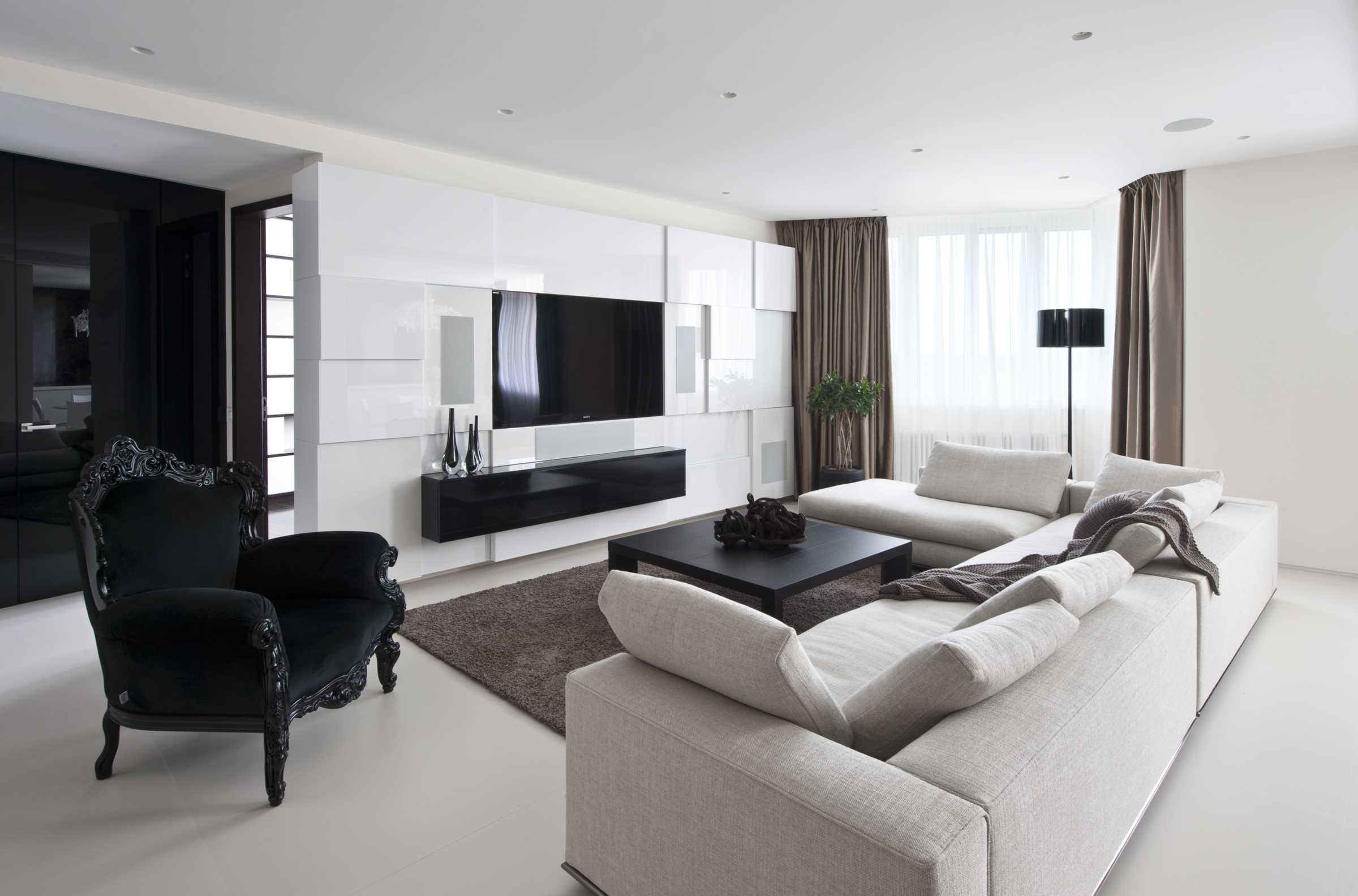 The most common combination in the modern design of apartments is black and white. This two-phase composition is suitable for lovers of simple concise style. Meanwhile, choosing the appropriate accessories, it will look luxurious, and will make a luxury apartment out of any room. This color can be used to design a study, living room, kitchen, bathroom and even a bedroom.