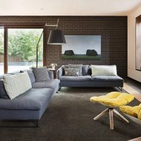 To achieve a successful asymmetric arrangement of furniture, balance a large sofa with several chairs. Although parts of your furniture may vary in style and size, the overall visual weight should be the same. Wall-mounted compositions also help create asymmetries in room design. Asymmetric balance can be achieved using some of the following principles: