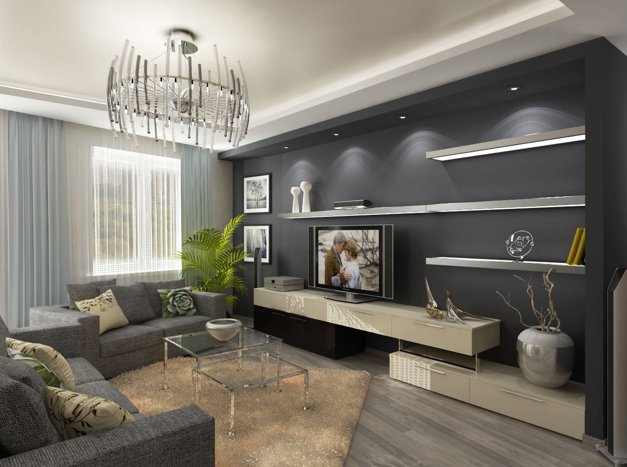 Asymmetric design offers a more relaxed, less formal approach to balance in a room. Asymmetric style assumes a chaotic arrangement of interior items, but the end result is always a visual balance of space. The asymmetric arrangement of furniture in the room helps to diversify the daily routine.