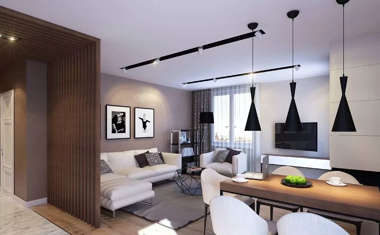 The combination of natural materials brings life to the modern interior of the apartment and can be combined in many ways.