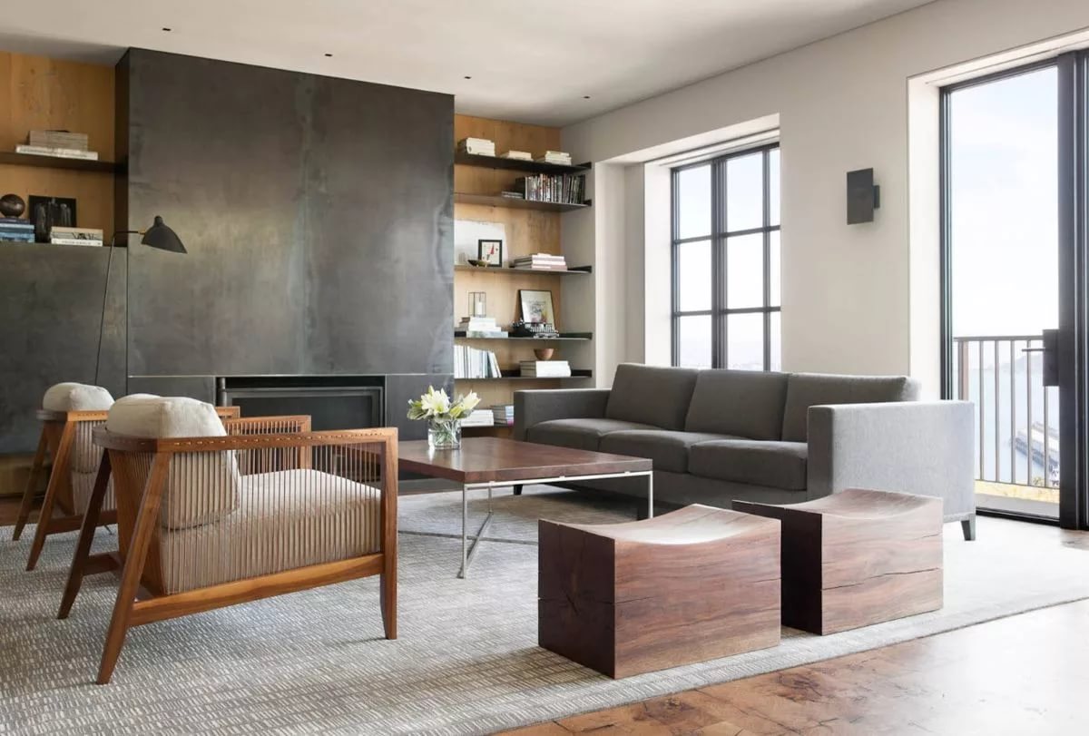 These materials are a combination of warm textures and cool colors. Marble, wood and concrete are brought together to create a damp but sophisticated space. An interior using these materials is great for a young couple, creating a minimal and modern interior.