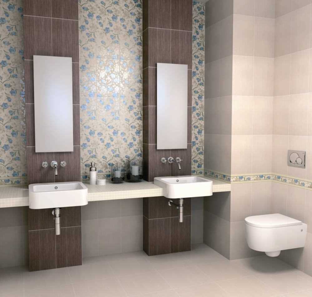 Ceramic tile with a pattern of flowers looks very beautiful in the design of the bathroom