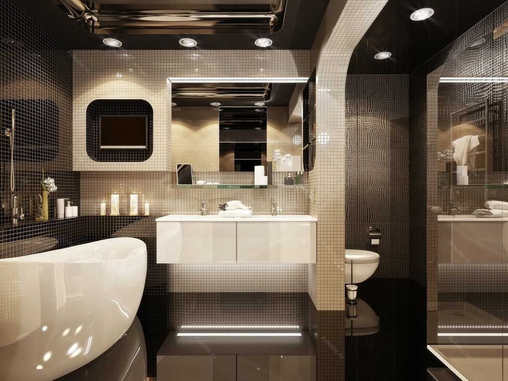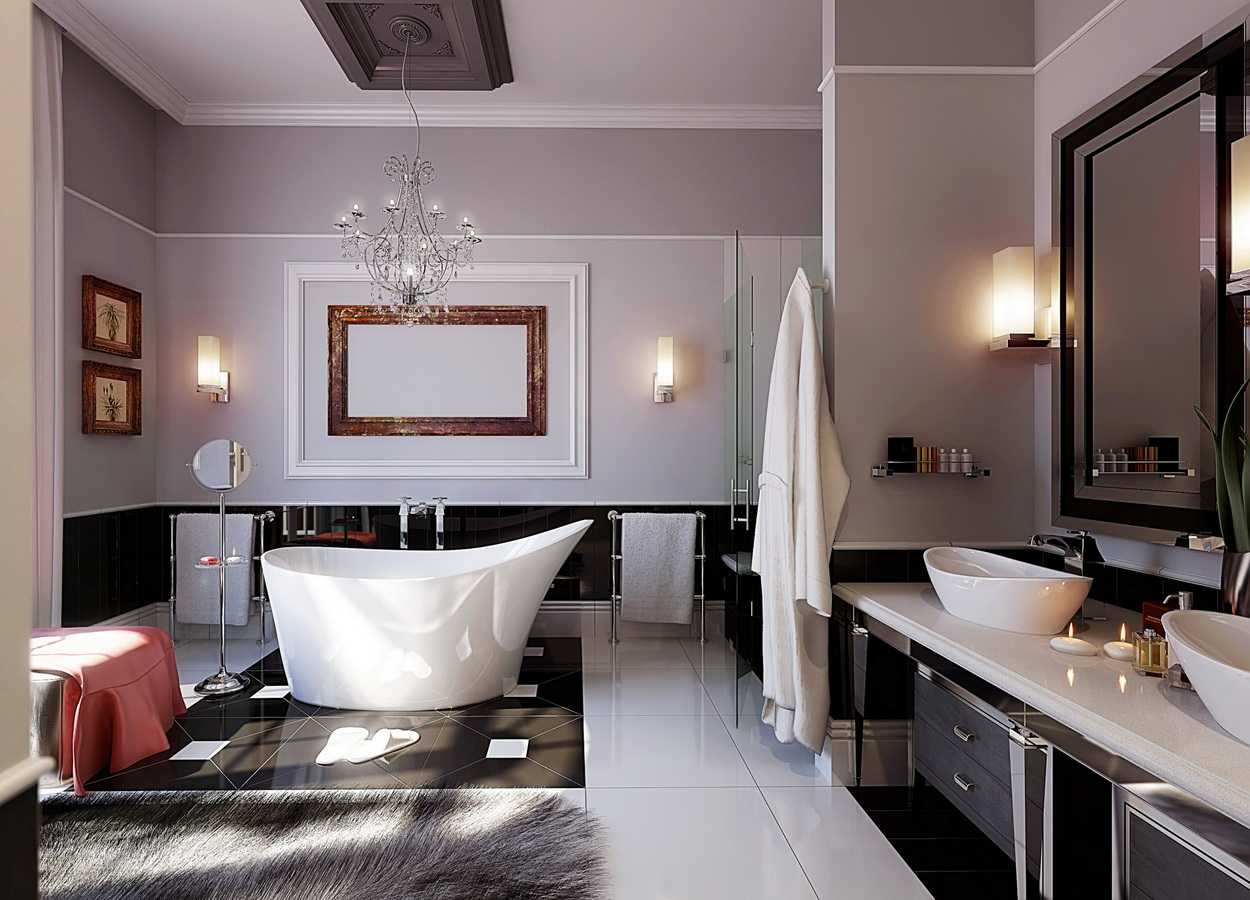 Lighting should be given special attention. Light intensity is key. Strong lighting creates an atmosphere of comfort in the room and emphasizes all the details of the interior. The shape and size of the light sources can be any. The decor in the bathroom and personal preferences matter.