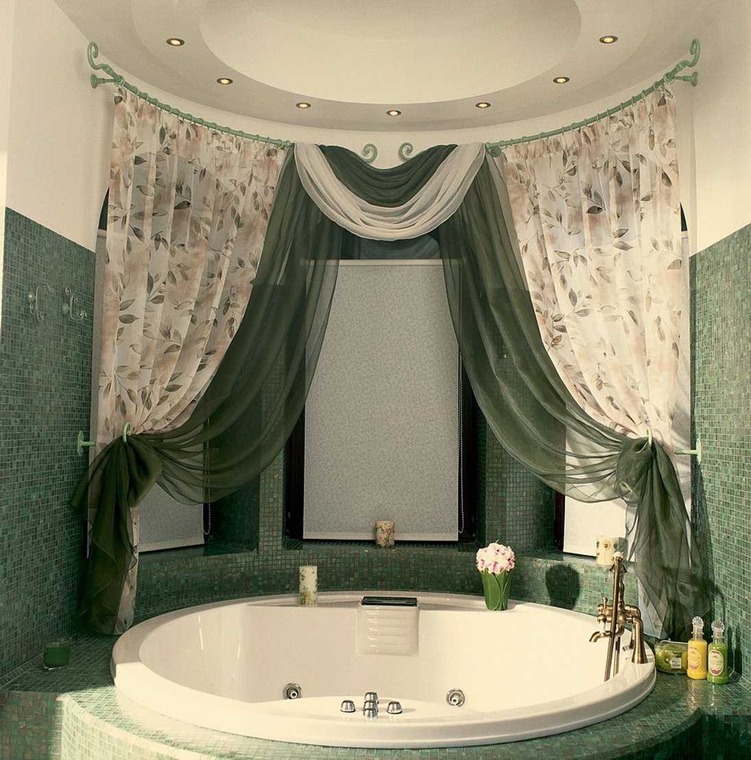 - The curtain should be replaced with a glass partition. She has similar functions, but looks more attractive. Caring for her is easier. There are models that use frosted glass.