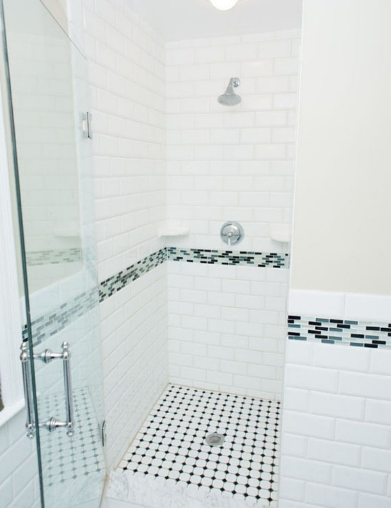 Possible options: mosaic, several bright tiles to create accents, a colored horizontal strip, a wide vertical strip on one of the walls, a floor of a different tone (this solution looks extremely natural, since the floor is traditionally darker than other surfaces). |