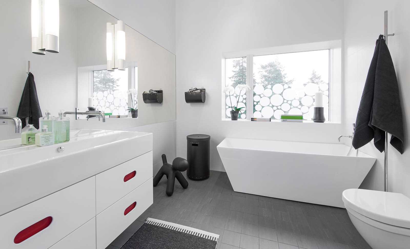 White design will satisfy the needs of even the most demanding inhabitants of an apartment or house. A game with decorative elements will create the appearance of a room that meets both the requirements of people with conservative tastes and the needs of those who strive for an original and unique bathroom design.