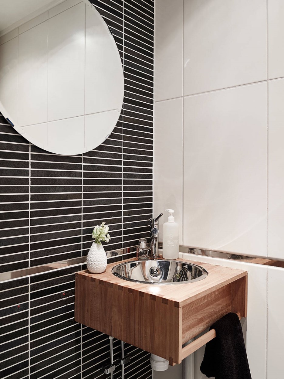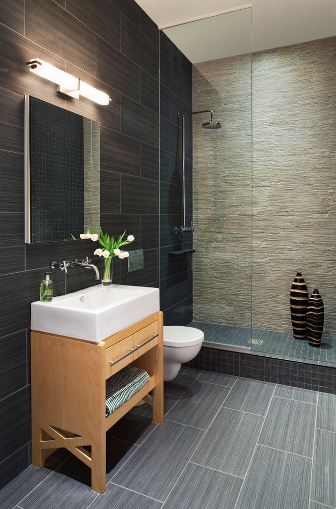 The design for a small bathroom includes a careful selection of finishes. The most popular tiles and mosaics. These materials have good resistance to moisture, they are easy to care for, tolerate temperature extremes and are reliable.
