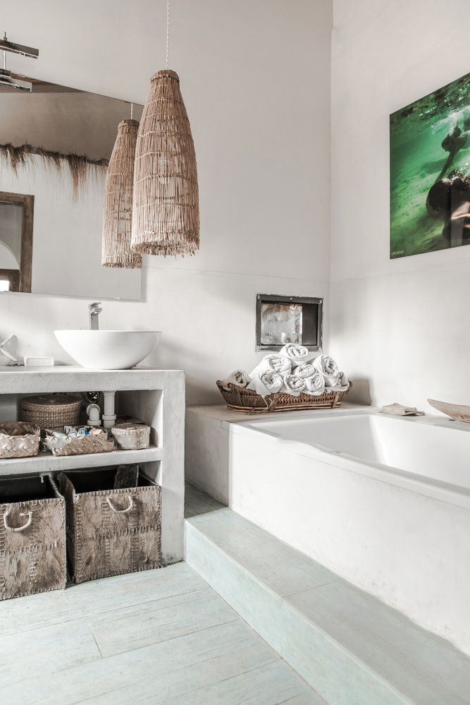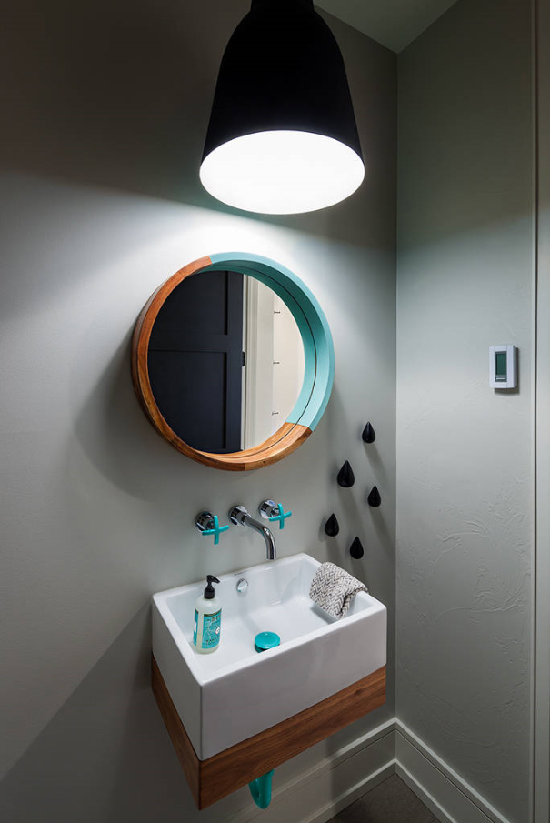 Marine style remains one of the most popular for the bathroom. It aims to create a fresh and relaxing atmosphere. Palette in white and blue tones. Images of marine life are posted on the walls. You can complement the space with a yellow shade that personifies sand. A mirror of a certain design in the form of a porthole of a ship.