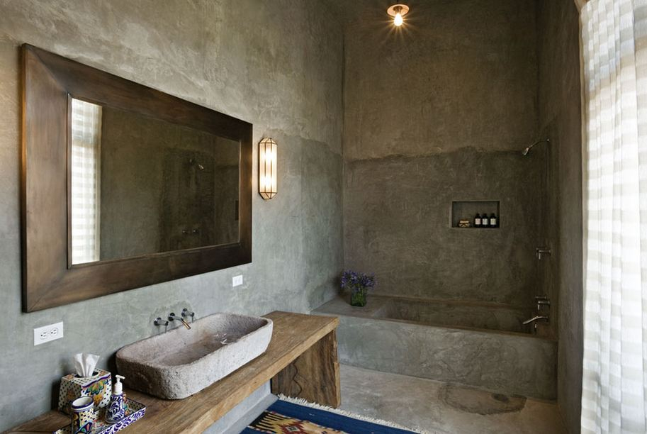 Porcelain tile has a large area. It’s easier to work with than with similar materials. But it’s worth preparing for big waste. You can design the floor and walls with an identical shade and size. Mosaic is durable. Suitable for round sections, including arch and ledge. Light colors fill the room with lightness, coolness and transparency. You can choose products where several tones of the same color are combined in different variations.