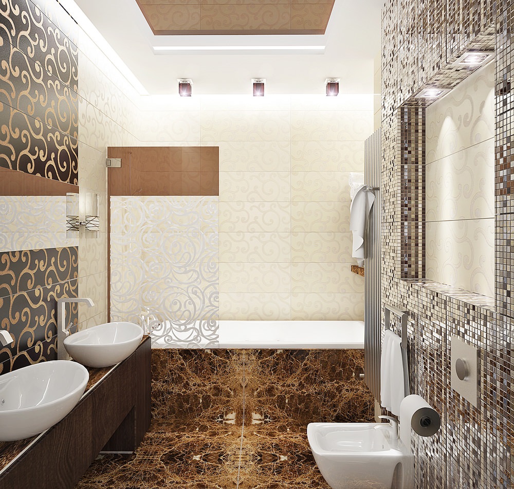 Combination with different interior styles. The bathroom in beige tones can be decorated with the actual features of French Provence, representative art deco or multifaceted eclecticism.