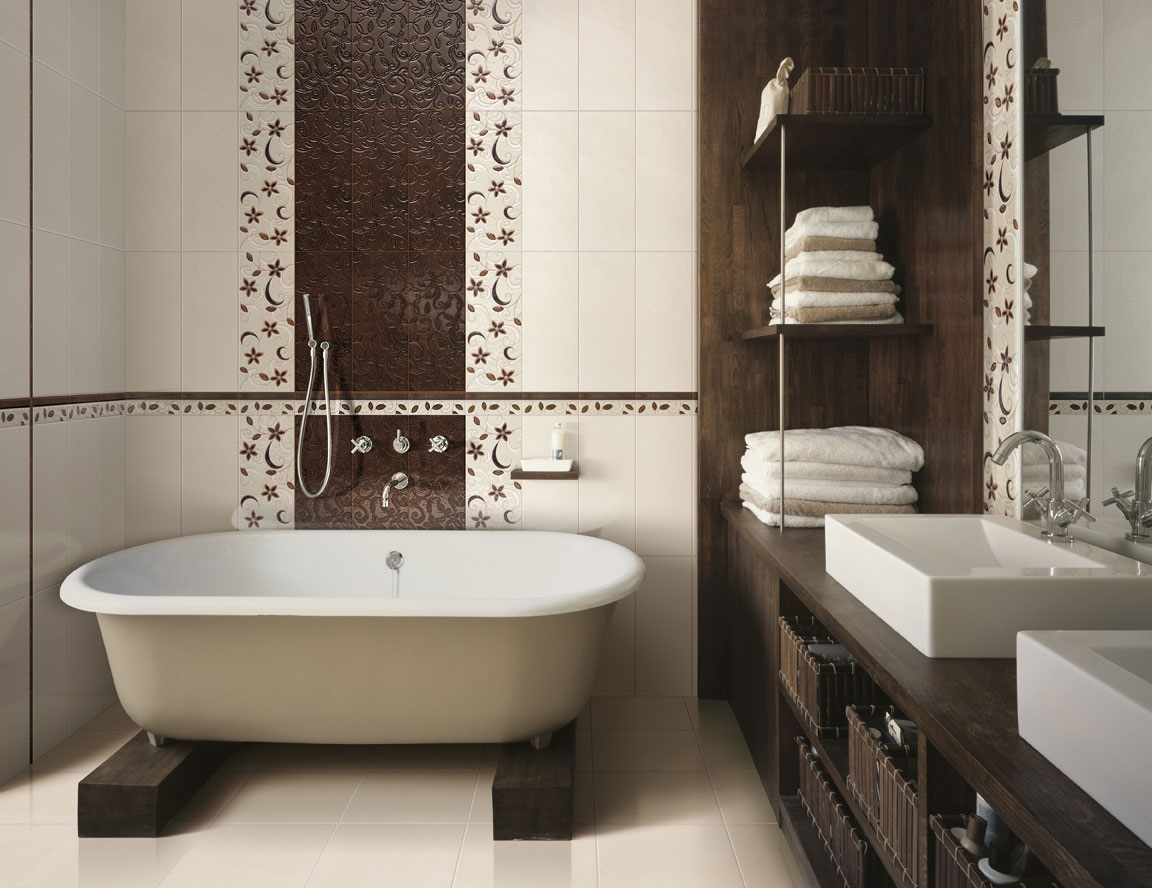 According to the designers, the brown color of the decoration of the room and the decor of the house gives it warmth and makes it cozy. A competent selection of shades will help to make the bathroom apartments special and unique. With the help of visual tricks you can "raise the ceiling", hide the imperfections of proportions. Light brown shades are used in small rooms, as they add light to the space. The dark shade will successfully emphasize the architectural elements.