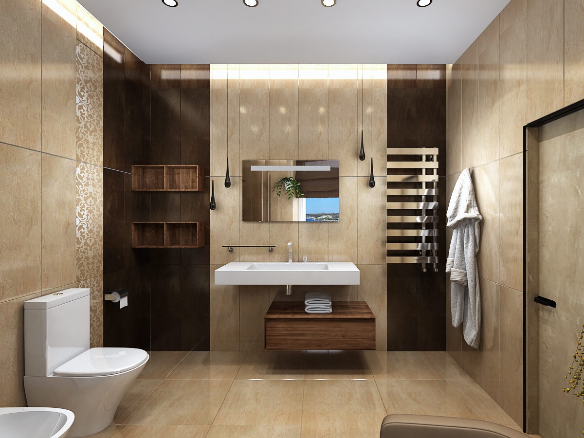 Bathroom design in beige colors: design nuances, furniture and plumbing
