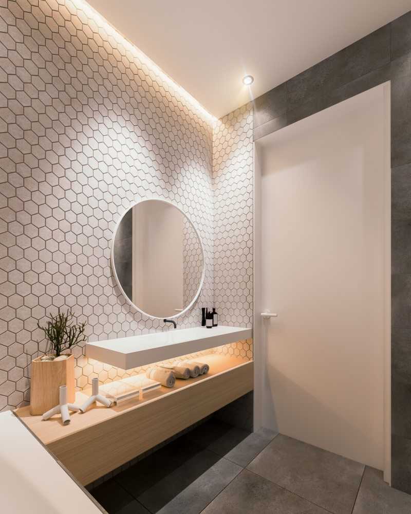 The combination of white and gray in the interior of the bathroom looks very beautiful