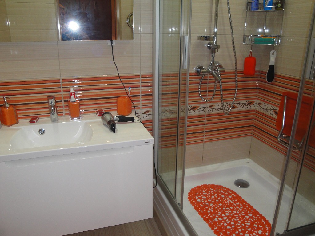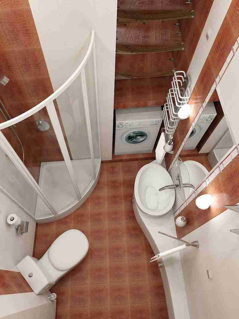 This is at best. At worst, no more than 3 square meters are available. meters. In such a tiny room, you can put a shower with glass wings. The glossy surface visually enlarges the space, making it lighter and lighter. Mirrors and glossy tiles on the walls will also create an expansion effect.