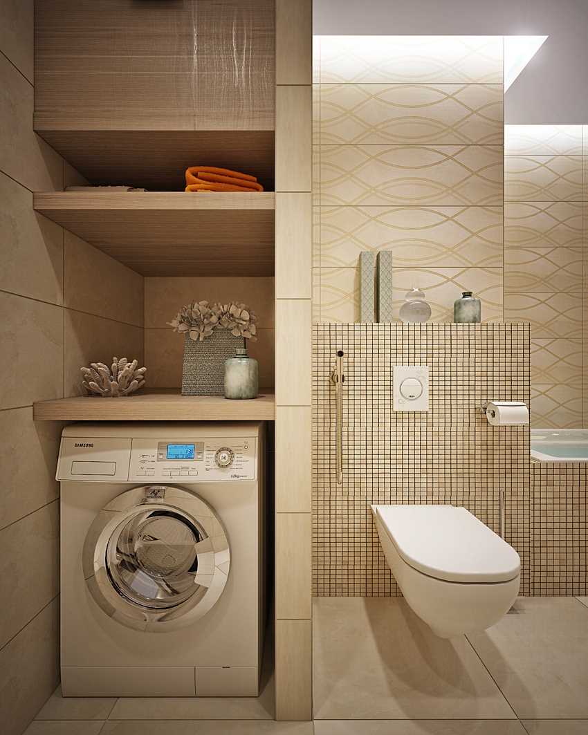 - The combination of bath and toilet by destroying the partition between them. In such a bathroom it will be possible to put a full-fledged washing machine.