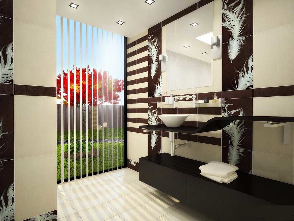 The bathroom is a place of peace and relaxation, too bright tones are inappropriate here. White tile, reminiscent of the facing of the Soviet era, is boring and trivial. Not so easy to perform spectacular the design of the bathroom is tiled, although the selection today is impressive. Tiles, porcelain tiles and ceramics are an excellent way to decorate rooms with high humidity. But it is important to choose the right material for cladding the surfaces of the floor, ceiling and walls in the bathroom or bathroom for an elegant interior.