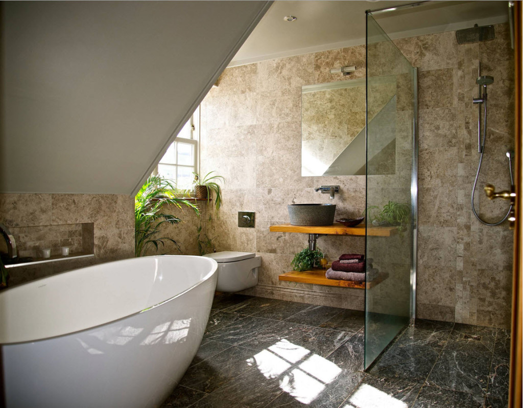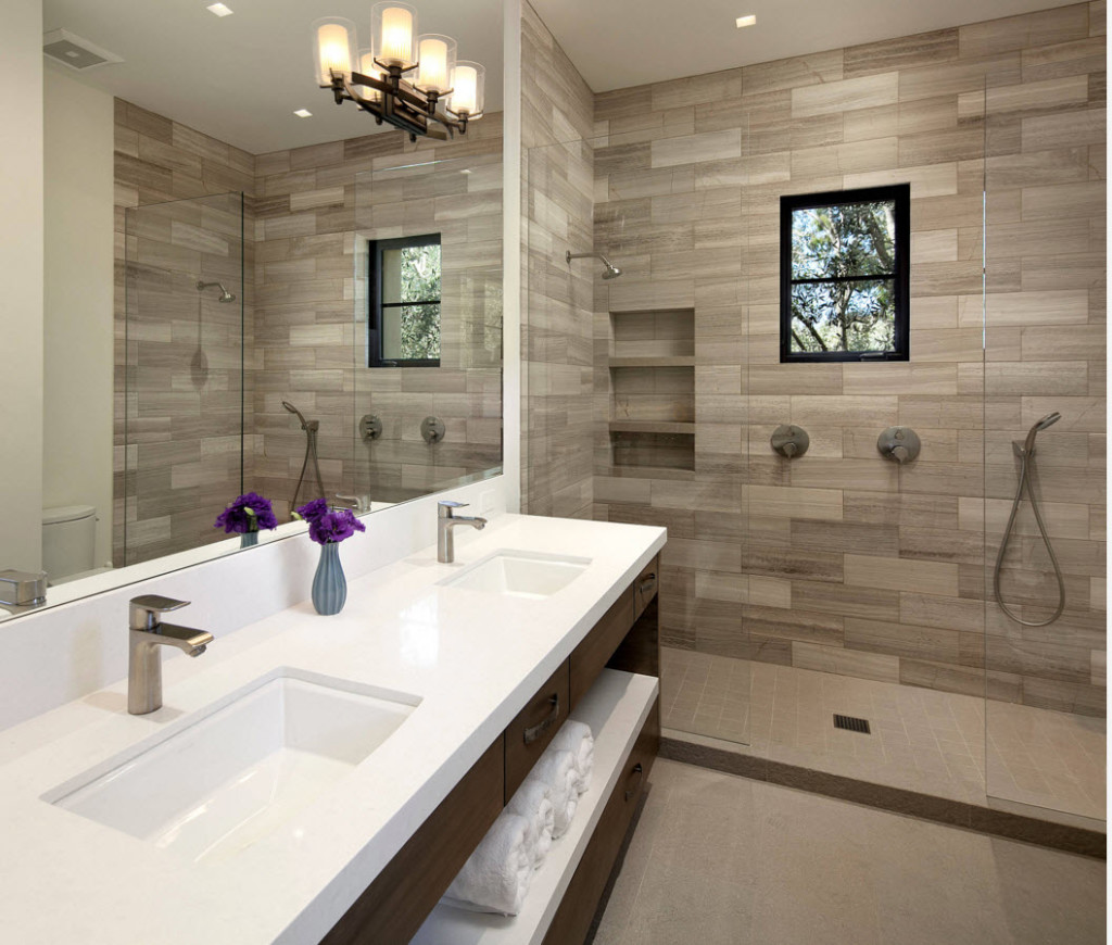 It is not necessary to use only one type of tile to create a bathroom design.