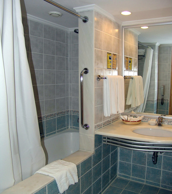 The floor tiles should have a minimum coefficient of friction - a rough base is safer when they become wet on the floor after water procedures.