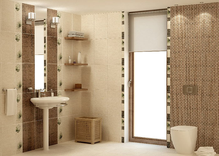 - A fully tiled bathroom looks overloaded. Therefore, it is recommended that one or two walls be made plain.