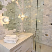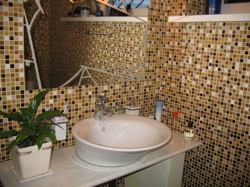 The decoration of the bathroom is high. The surface should be moisture resistant, easy to wash, maintain its original appearance, despite high humidity, exposure to hot steam. These criteria correspond to the mosaic in the interior of the bathroom.