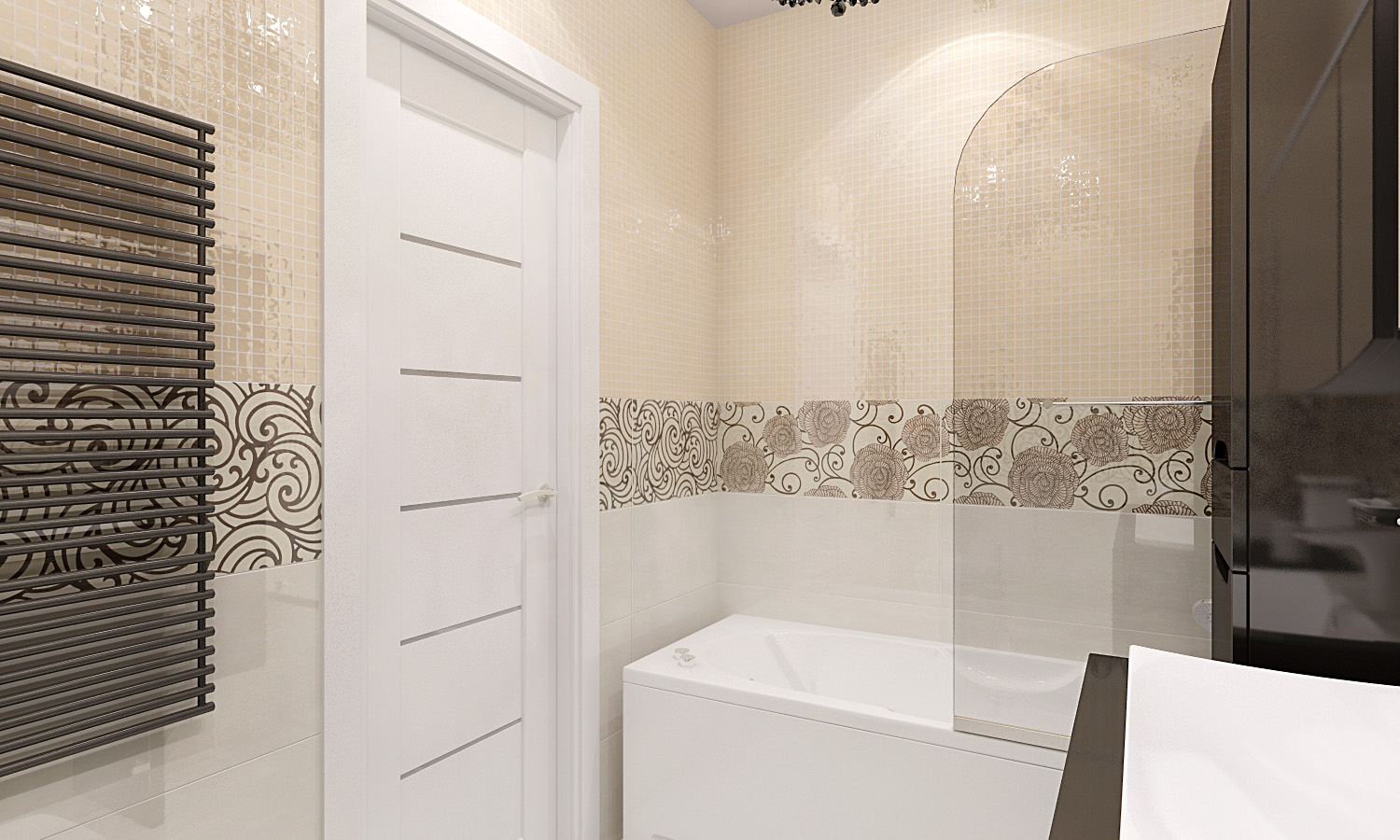 Tile design in the bathroom attracted by its diversity. First, it’s enough to study the popular models on the market. This will allow you to pre-select options that are combined with the style of the room. Next, write out for yourself the parameters by which you will select the tile: color spectrum, patterns or various effects, size, quantity, tile quality, maximum price level.