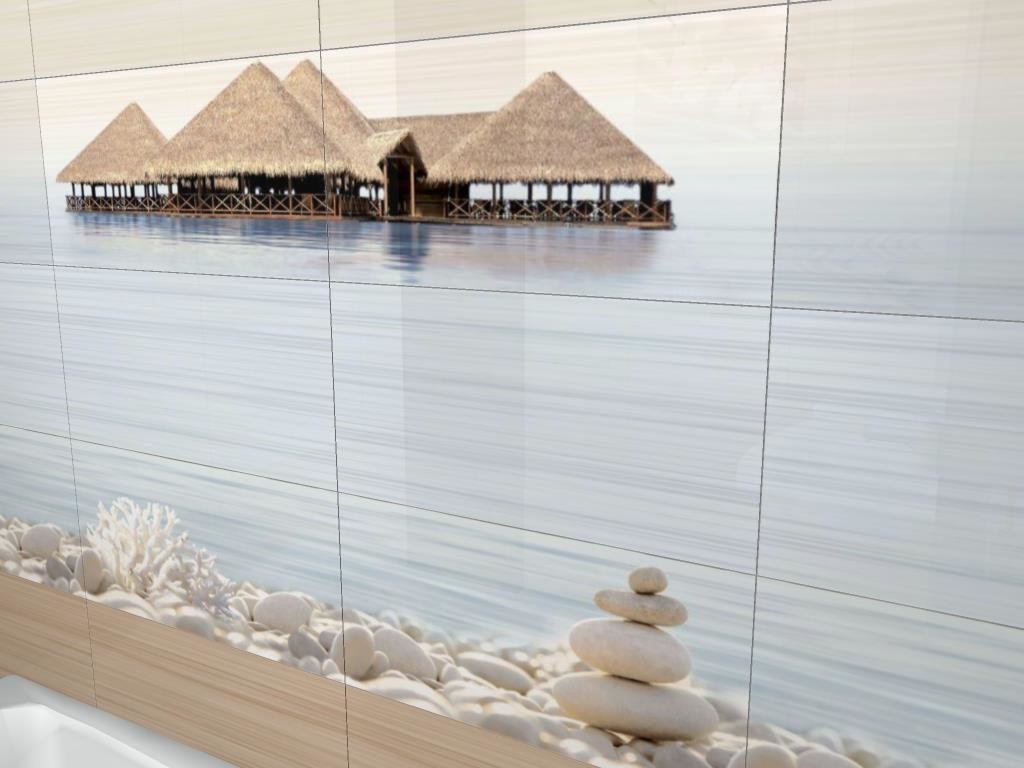 Approach the selection and installation of photographic tiles in the bathroom necessary competently. If you successfully choose a picture and decorate the room in the right colors, you can increase it a little. For example, it is advisable to choose marine themes for the bathroom. You make out one of the walls using the 3D effect. This will allow her to go into the distance, and the room will visually become much larger.