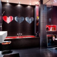 - Red tile - indispensable in the styles of art deco, high-tech, oriental. A competent combination of tile sizes with decor and accessories is only possible for an experienced designer.