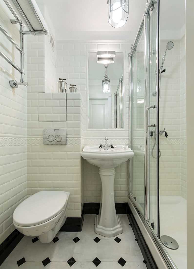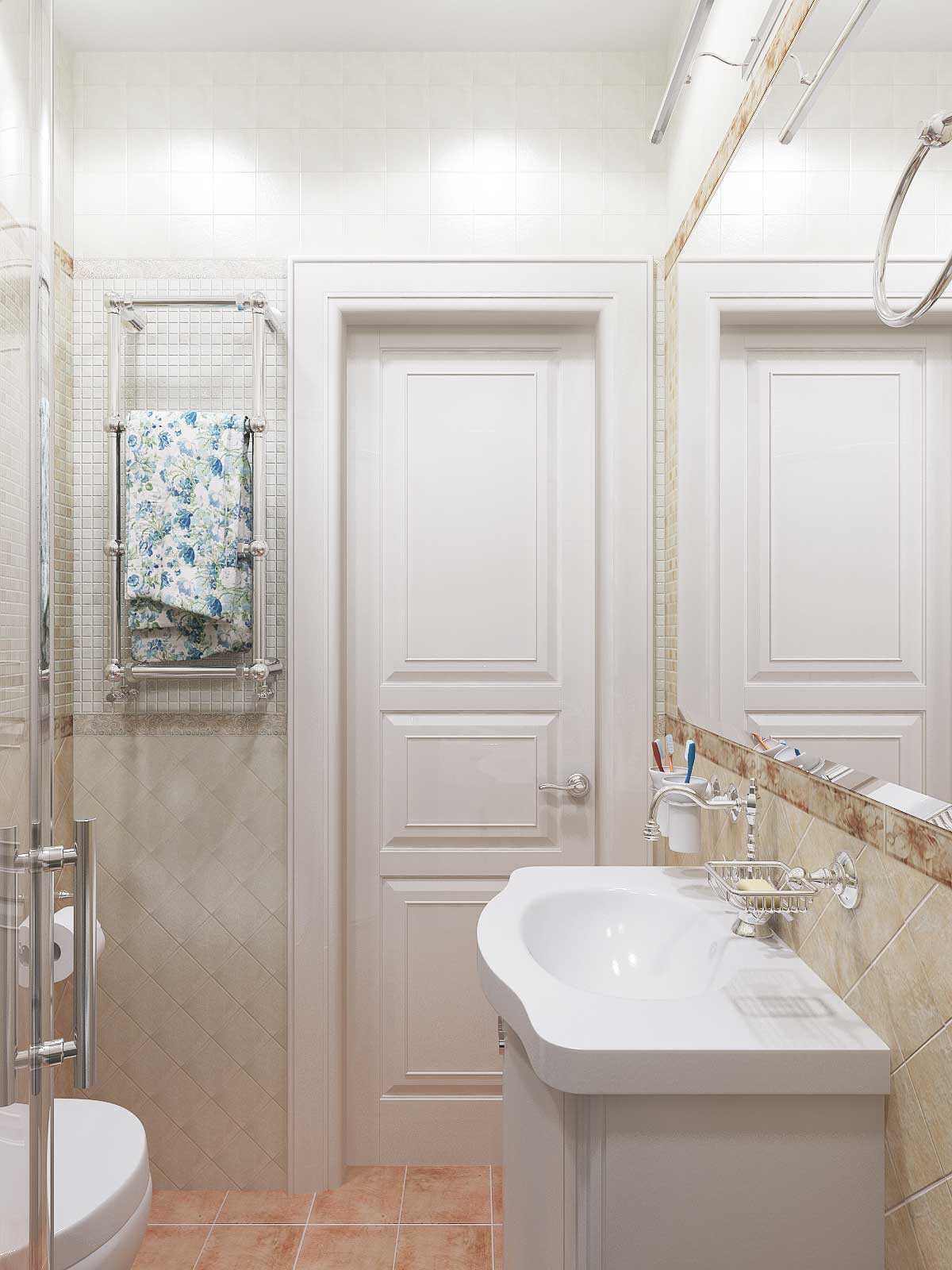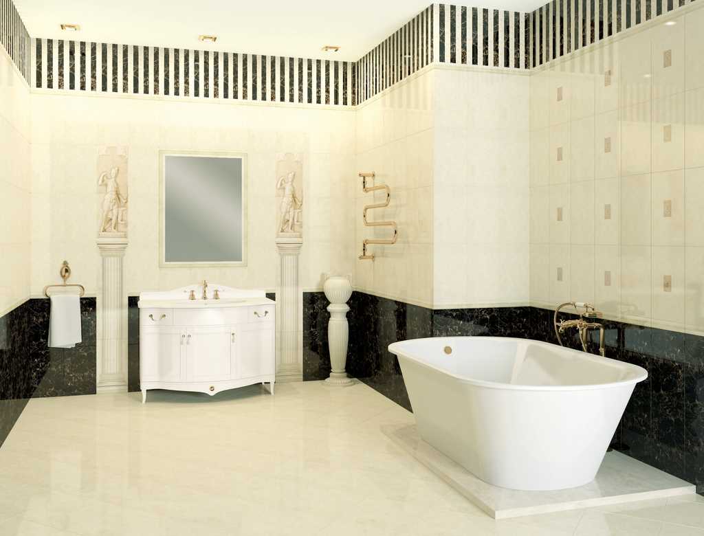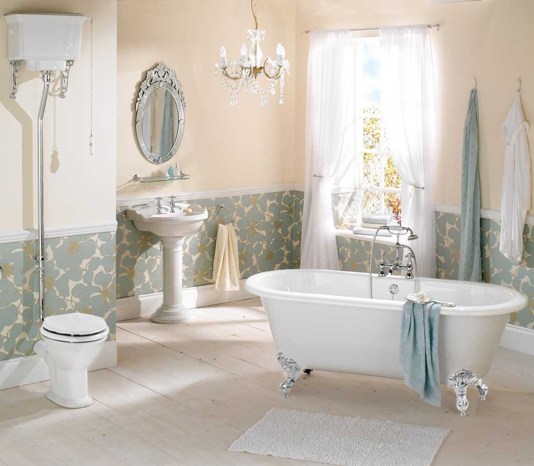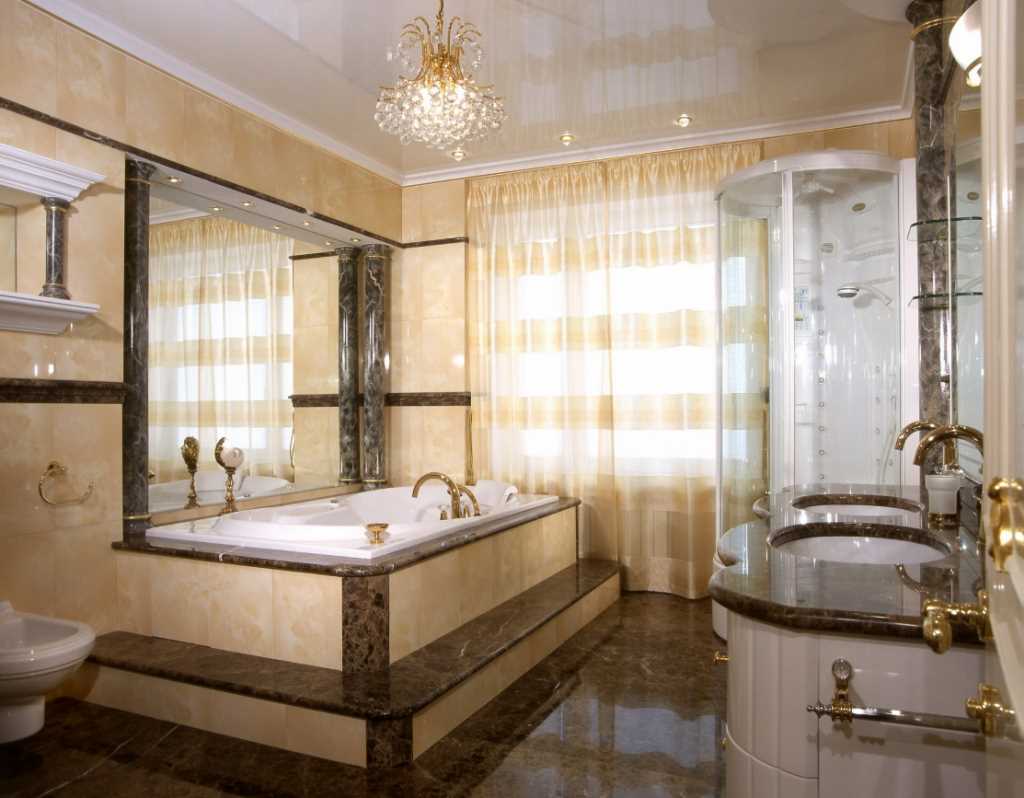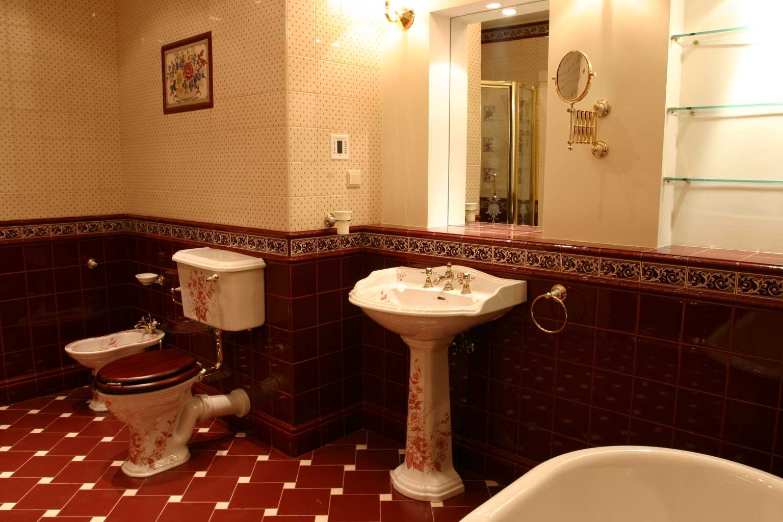 Specialists recommend using classics for arranging rooms with a large area, as shown in the photo. As practice shows, it can be implemented in a small space. The main thing is to responsibly and competently approach the task. This is ideal for the bathroom, where there is a toilet and bath. Easy to equip in new and old buildings.