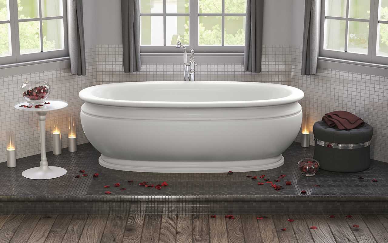 The main detail is the bathroom. It is installed in the center of the room on a specially prepared podium. Otherwise, it should have bent legs, manual production. Look great cast iron or marble version of it. It is characterized by soft and smooth lines, the presence of a headrest, which is slightly raised. As for the color, it is dazzling white, the shape is oval.