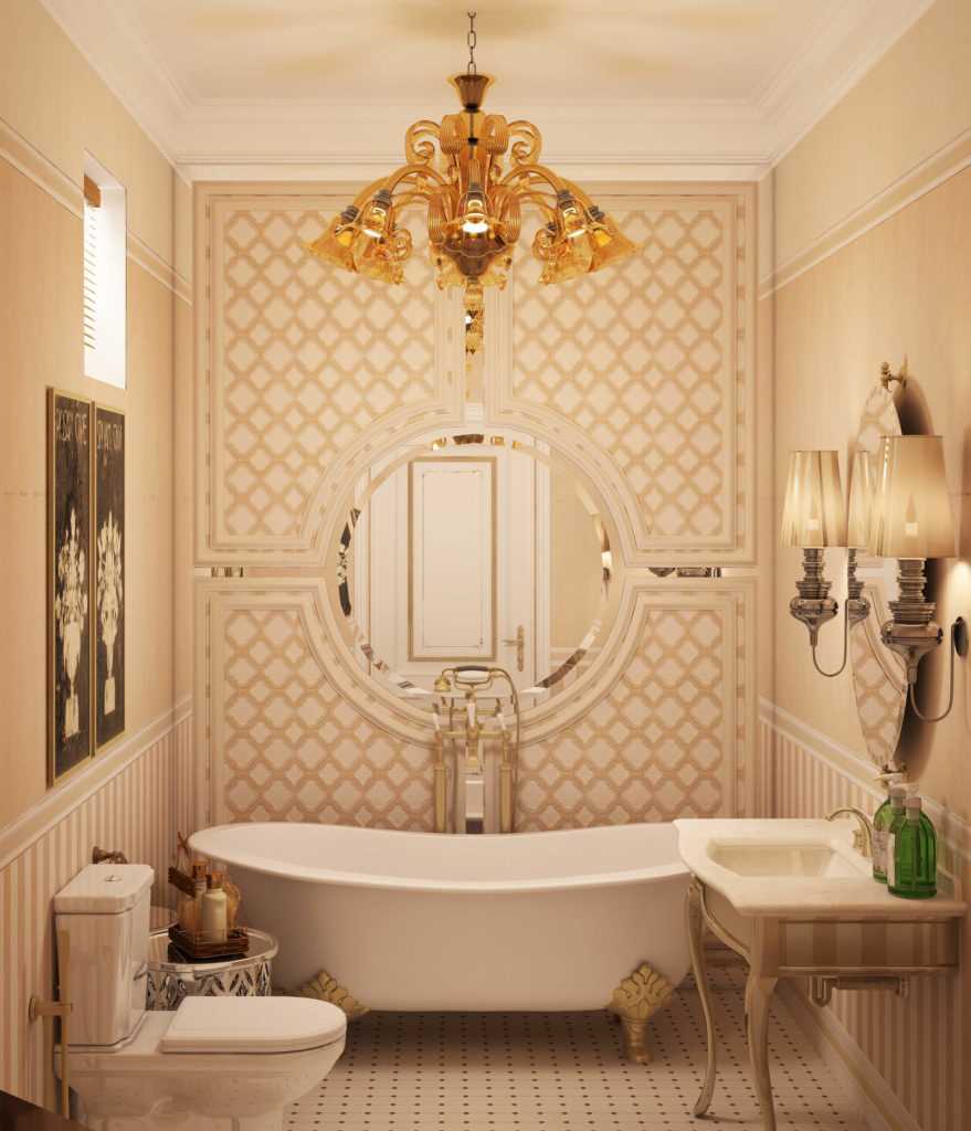 Classic - a royal style of bathroom design. Its implementation will require a substantial investment, the use of high-quality materials, the installation of expensive furniture, and decor elements. The design of the bathroom in a similar style is part of the historical period. It is this interior that kings chose for a room designed for hygiene and relaxation.